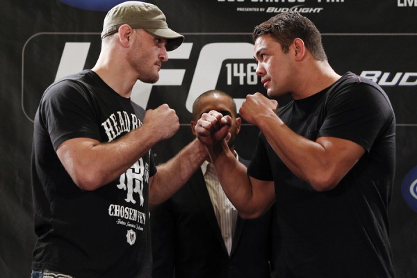 По окончании пресс-конференции все участники основного карда UFC 146 обменялись взглядами перед церемонией взвешивания.